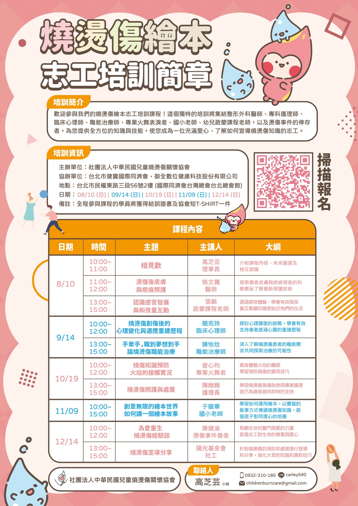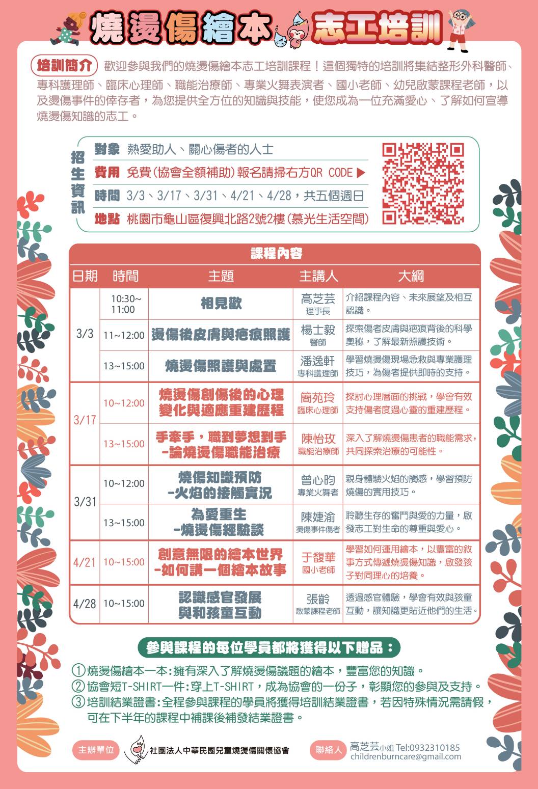 news 最新公告 歡迎來到協會最新公告頁面!我們將持續更新培訓課程、活動資訊與重要通知,讓您第一時間掌握最新動態。 全部 培訓課程 活動資訊 全部 全部 培訓課程 活動資訊 培訓課程 燒燙傷繪本志工培訓 歡迎參與我們的燒燙傷繪本志工培訓課程!這個獨特的培 ... 2025 年 3 月 27 日 活動資訊 燒燙傷繪本新書發表暨親子公益園遊會 大家期待已久的日子終於來臨,你們準備好了嗎?✨現場 ... 2024 年 7 月 27 日 培訓課程 燒燙傷繪本志工培訓 歡迎參與我們的燒燙傷繪本志工培訓課程!這個獨特的培 ... 2024 年 5 月 2 日 培訓課程 燒燙傷繪本志工培訓 歡迎參與我們的燒燙傷繪本志工培訓課程!這個獨特的培 ... 2023 年 12 月 14 日
